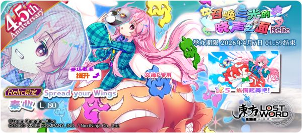 ※「断裂的钥匙串、被丢弃的心灵 古明地觉(L0o)」「已逝古神的痕迹 洩矢诹访子(L0g)」「风化山岳的静寂信仰 八坂神奈子(L0g)」「失传的荒废仪式 东风谷早苗(L0g)」也可以通过「白FES祭绘马」获得。