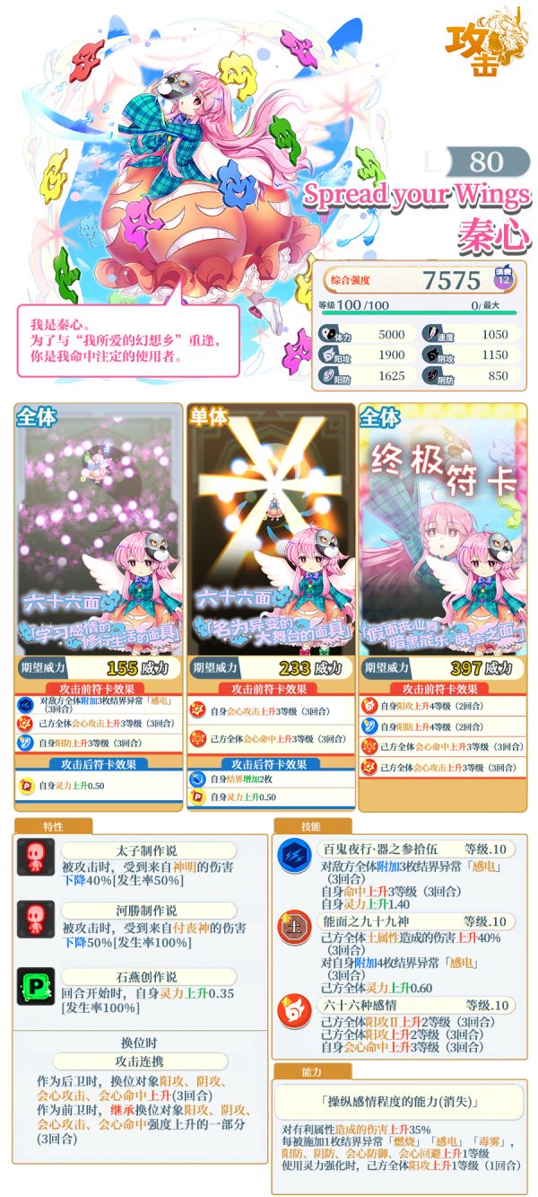 ※「Spread your Wings 秦心」需要使用同名伙伴或者「灵之替身」进行界限突破。不同泛异记号的伙伴及「灵之替身」外的其他替身无法对其进行界限突破。