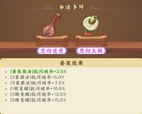 提供抗闪避率加成,首次激活/2星/4星/1级觉醒/3级觉醒/5级觉醒:2.5%/5.0%/7.5%/10%/12.5%/15.0%抗闪避率。