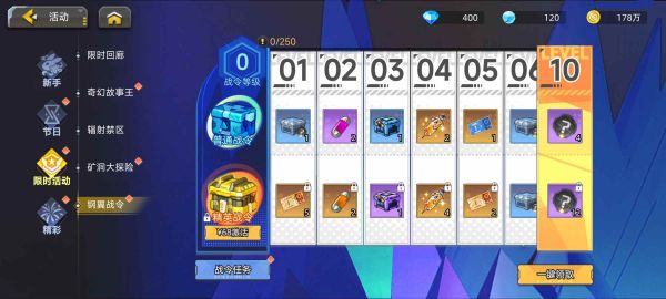 活动内容:完成战令任务升级战令等级,达到目标战令等级即可领取奖励!