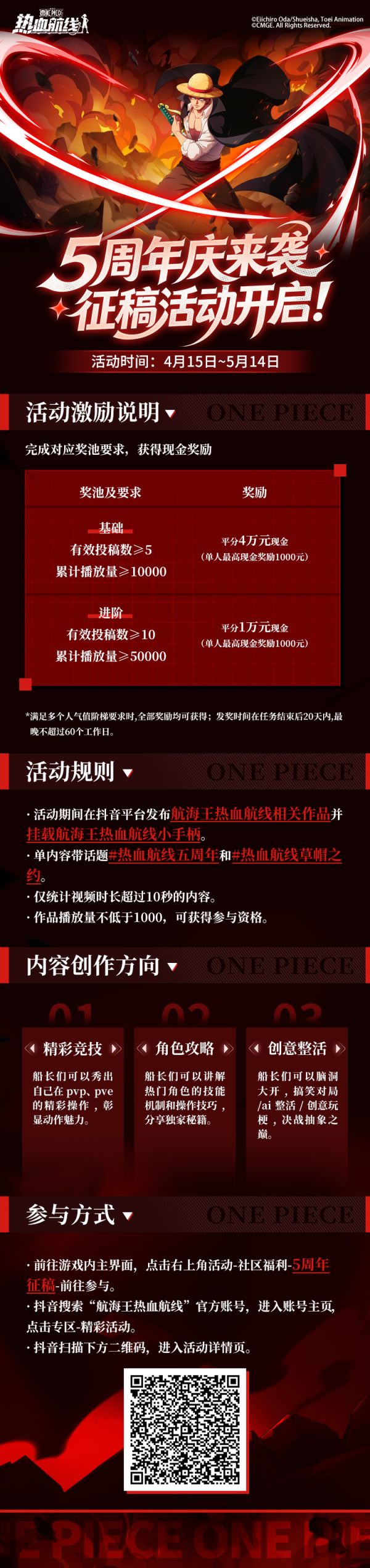 五年同行,热血不息!航海王热血航线五周年庆即将开启,感谢每一位船长的陪伴与热爱~