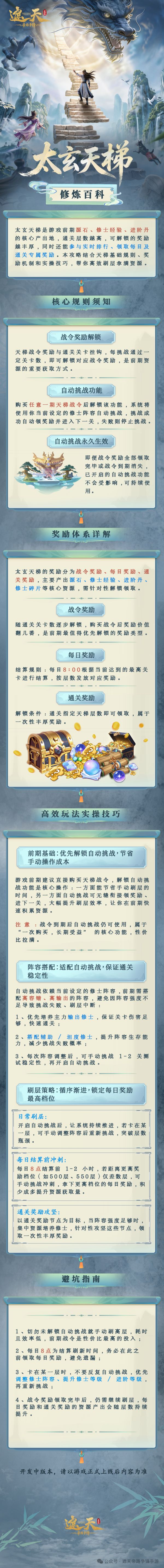 太玄天梯,是太玄门拙峰的标志性试炼之地,由九色古玉砌成,一阶一重天,越往上威压越强,不仅考验修士的肉身根基,更磨砺道心与悟性。本期首先带来的是太玄天梯玩法,道友们一起来看看吧~