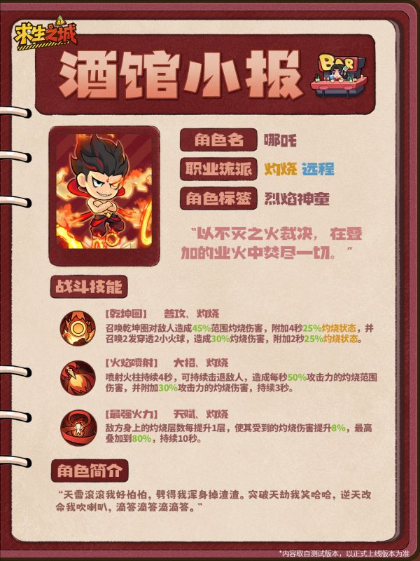 在酒馆,想认出这位小英雄很容易——听动静就行。他总在角落那张最结实的桌子旁,用乾坤圈不厌其烦地滚着一颗烧得发红的炭球玩。他心情好时会主动跟人玩“看谁先眨眼”的游戏,输的人要请他喝果汁。如果有人对他的身高或外形发表评论,最好提前准备好灭火装置——他证明自己的方式通常比较“热情”。