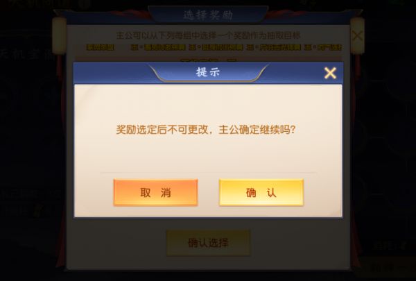 2、主公可以在天机宝阁中选择奖励作为抽取目标,奖励选定后不可更改,请主公谨慎选择。