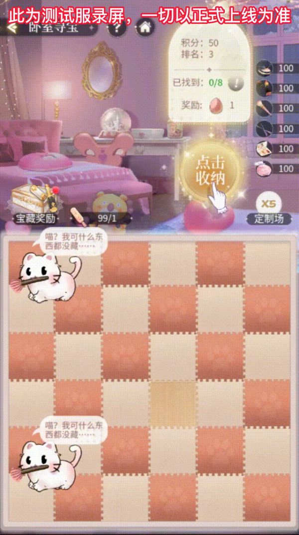 活动期间內三小姐可使用【彩妆探测器】在卧室里寻找散落在地毯下的化妆品,